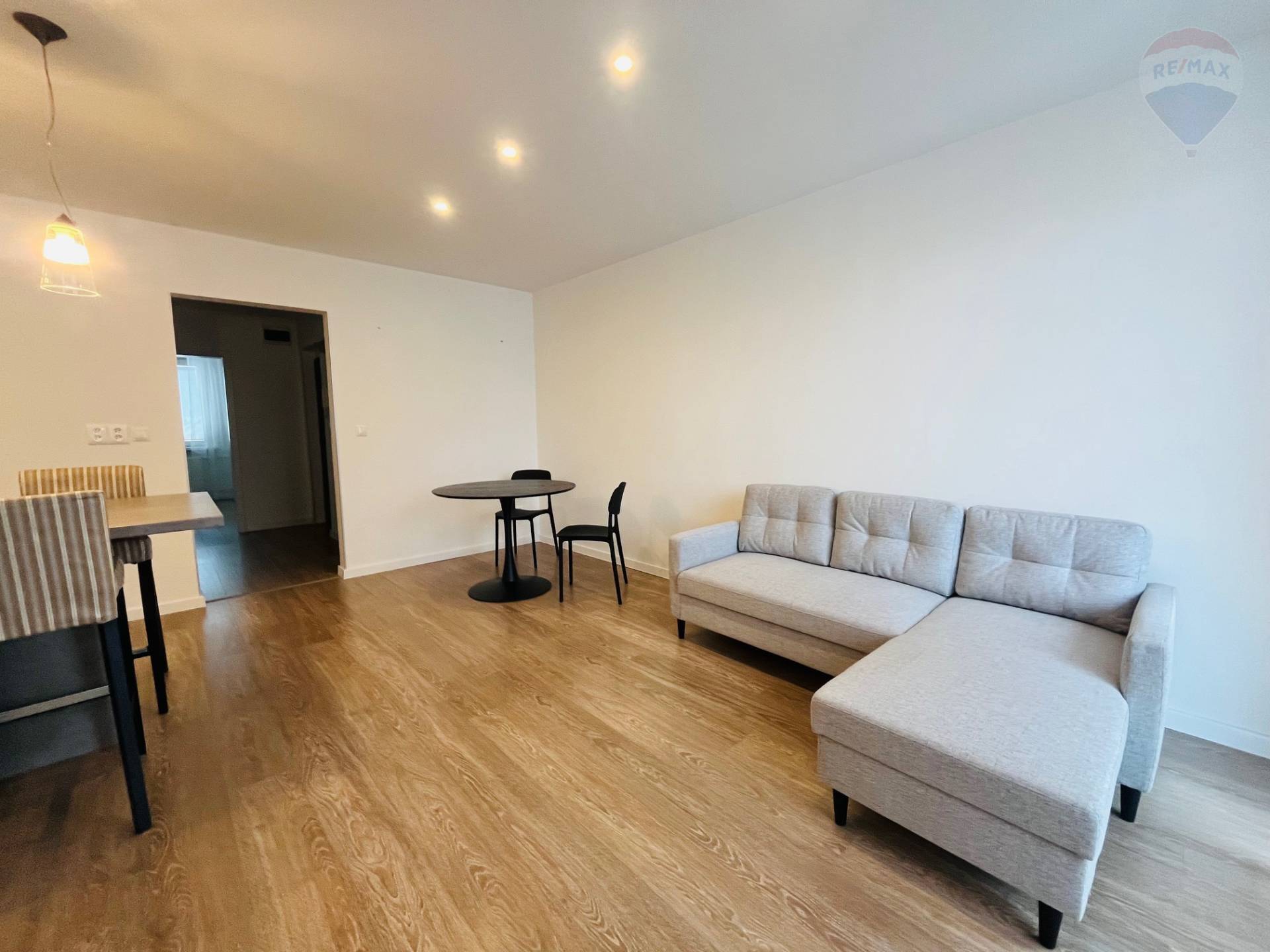 Ponúkame na prenájom pekný nezariadený 2 - izb. byt vo výmere 60 m2 v kúpeľnom meste Bojnice, ulica Prievidzká. Byt sa nachádza na 1. poschodí v bytovom dome na ul. Prievidzská mesto Bojnice. Byt sa prenajíma čiastočne zariadený. Je čistý, voňavý, kuchyňa je vybavená kuchynskou linkou a zabudovanými vstavanými spotrebičmi - el. rúra, varná doska, digestor, mikrovlnná rúra, vstavaná chladnička... Kúpeľňa je vybavená samostatnou sprchou, umývadlom a WC, má pračku. Obývacia izba je spojená s kuchyňou a vybavená televízorom aj skrinkou pod TV, rohový gauč, stôl, 2x stolička, 2x barová stolička. Spálňa je vybavená vstavanými skriňami, manželská posteľ bez matracov. Byt má aj samostatný šatník s policami s prístupom z chodby. Výhody: - príjemné bývanie v kúpeľnom meste Bojnice - výborná dostupnosť do centra Bojníc na peši, či autom - rodinná atmosféra bytového domu Voľný ihneď !!! Nájom celkom 650 eur/mes. vrátane energií (400,- eur čistý nájom a 250,- eur/mes. zálohové platby na energie vrátane internetu). Pri nástupe do nájmu sa hradí kaucia vo výške 1.300,- eur vratná po ukončení nájmu a poplatok RK vo výške 650,- eur.