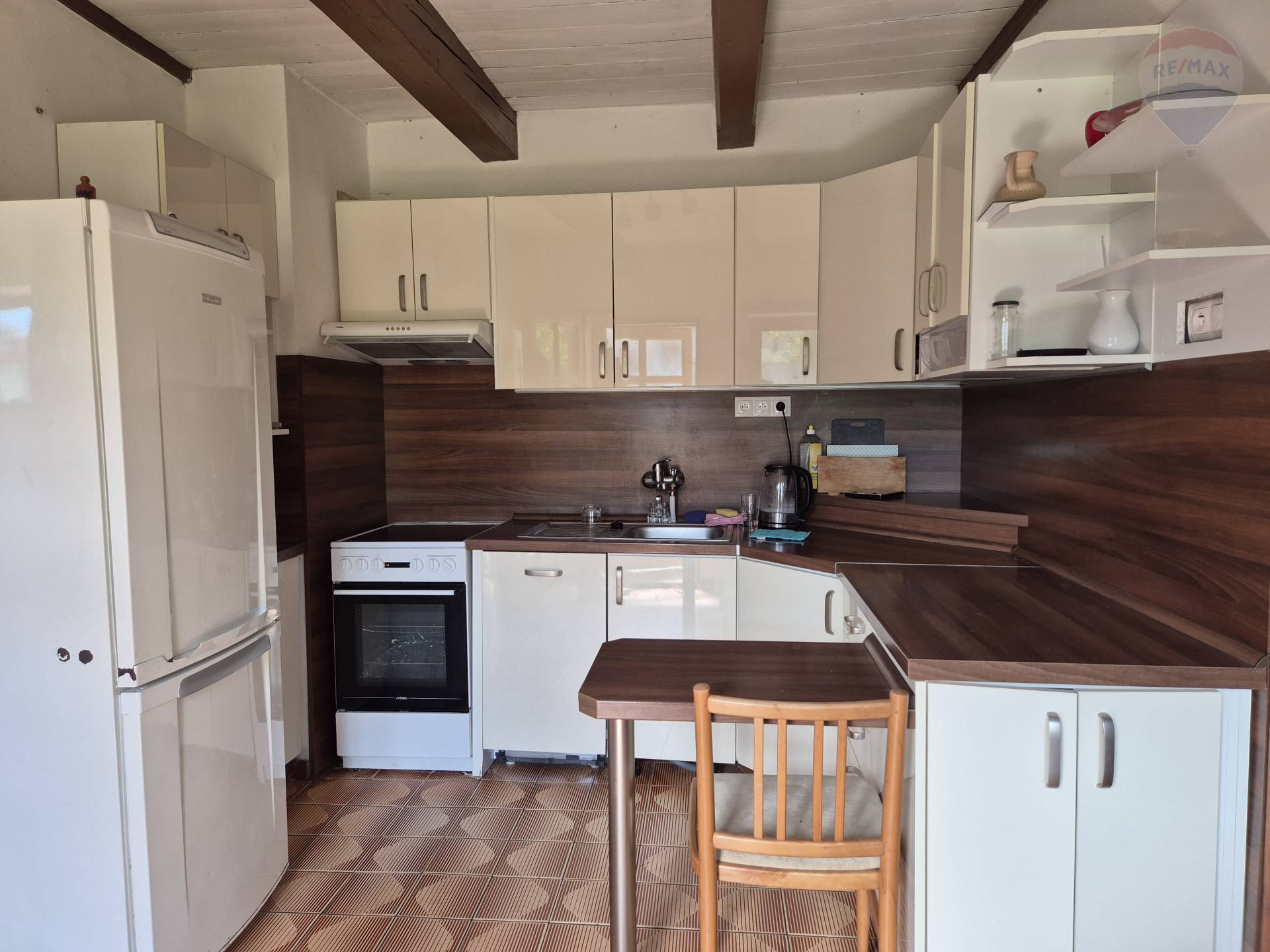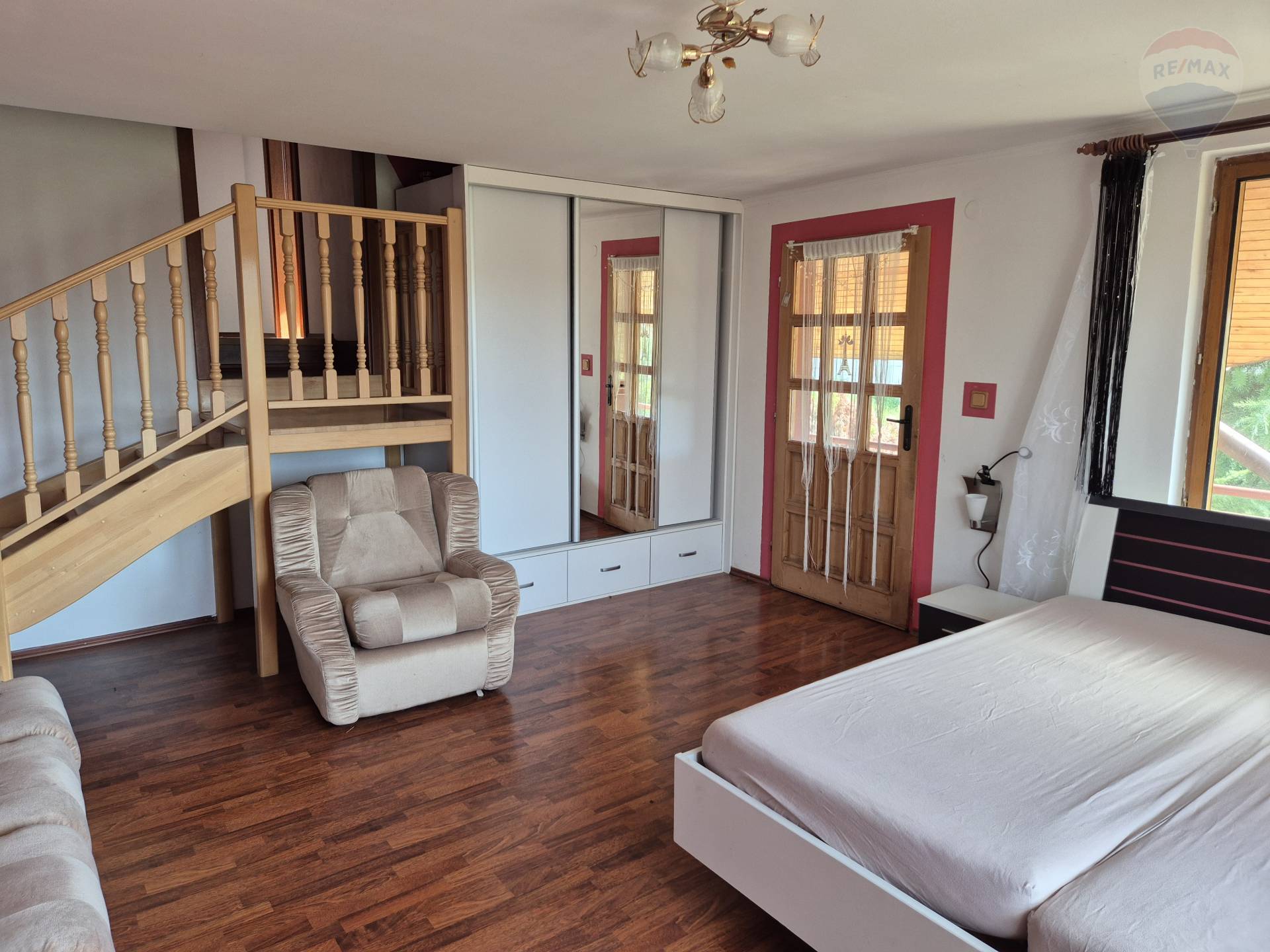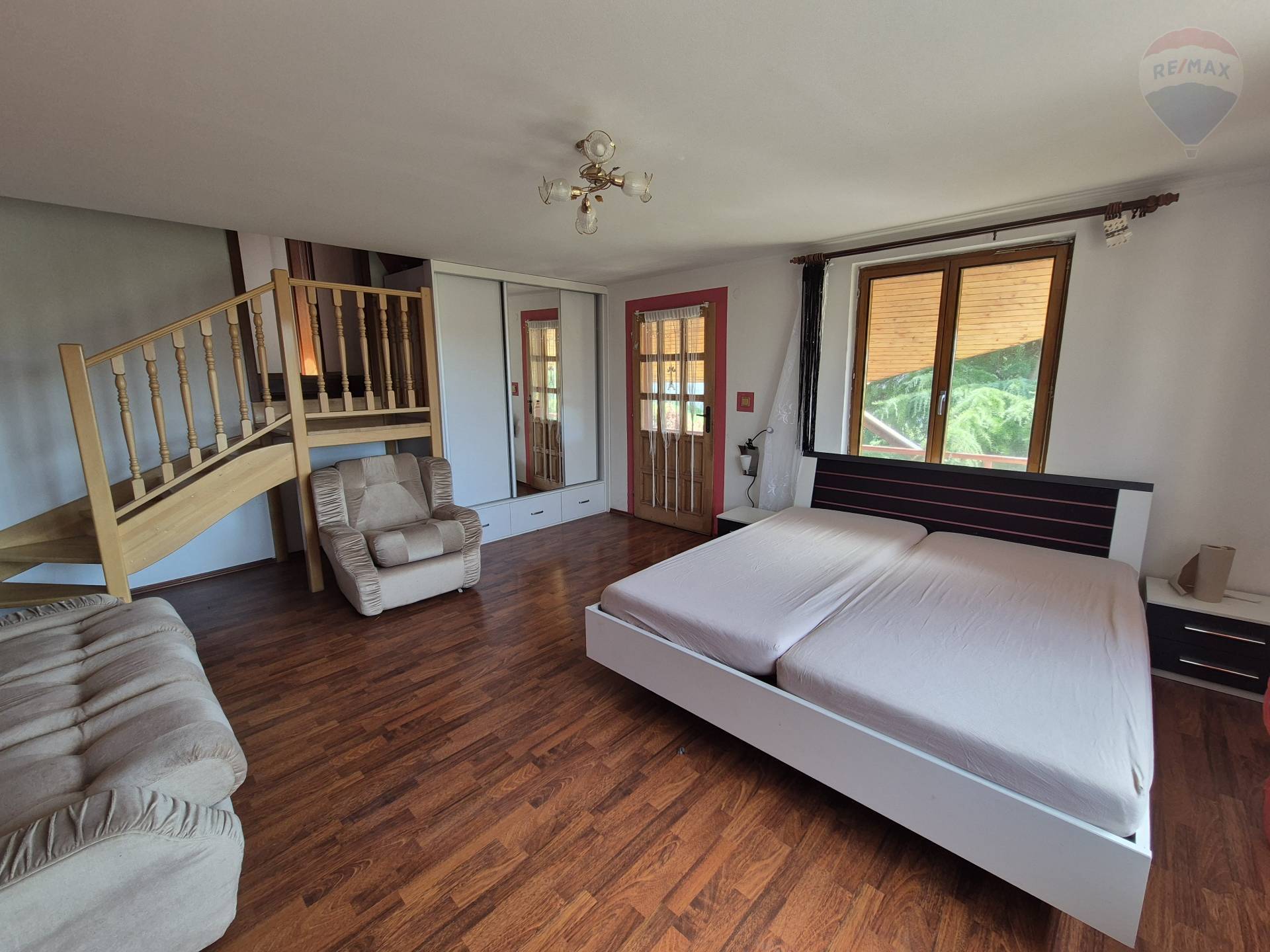 Realitná kancelária RE/MAX ponúka na prenájom dvojgeneračný rodinný dom na pozemku s výmerou 1025 m2 v obci Malý Lapáš, okres Nitra. Výhodou ponuky je aj vynikajúca dostupnosť do krajského mesta Nitra (10 minút autom), napojenie na diaľnicu R1 len 5 minút od domu. Rodinný dom je svojím charakterom vhodný pre dlhodobý prenájom viacčlennej rodiny, prípadne pre firmu na ubytovanie zamestnancov. Poskytuje dostatočné súkromie a dobré parkovacie možnosti, benefitom je aj väčší pozemok vhodný na relax, grilovanie, pestovanie ovocia a zeleniny, prípadne výbeh pre domácich miláčikov. Dispozícia RD: dom disponuje dvoma samostatnými vstupmi. Na prízemí je vybavená kuchyňa, obývačka s krbom, priechodná izba, kúpeľňa s vaňou, samostatné WC a špajza. V podkroví sú tri menšie izby a veľká spálňa s výstupom na terasu, kúpeľňa s WC a sprchovým kútom. Z exteriéru sú prístupné ďalšie 2 skladovacie miestnosti (šopa a technická miestnosť) a zo zadnej strany aj pivnica. Mierne svahovitý pozemok je oplotený, na ulici je možnosť parkovania pod prístreškom. Rodinný dom je pripojený na elektrinu, plyn, obecnú vodu. Možnosť pripojenia na TV a internet. Nehnuteľnosť je ihneď voľná. Cena nájmu: 1000 EUR/mesiac + 200 EUR/mesiac/energie. Pri podpise nájomnej zmluvy sa vyžaduje 2-mesačný depozit.