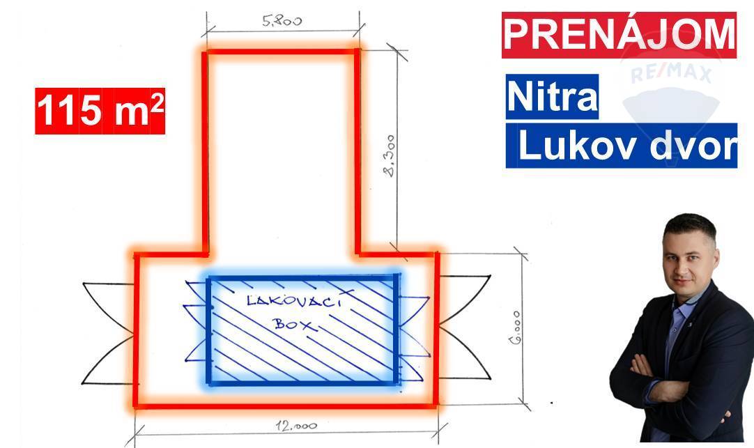 EXKLUZÍVNE LEN U NÁS! Realitná kancelária RE/MAX Family Nitra ponúka na prenájom halu s výmerou 115 m² s Lakovacou kabínou SAIMA Meccanica model PRISMA B 0600, nachádzajúcu sa v meste Nitra, v mestskej časti Lukov Dvor, k. ú. Párovské Háje, na ulici Jarocká. Hala má výmeru 115 m² a ponúka možnosť využitia lakovacej kabíny. Technické parametre zariadenia SAIMA PRISMA (séria B 0600, rok výroby 2000) ide o robustné zariadenie s nasledujúcimi dôležitými špecifikáciami: Parameter Hodnota Jednotka Význam Séria B 0600 Kód série zariadenia, pomáha pri identifikácii náhradných dielov. Rok výroby 2000 Starší model (zariadenie má 25 rokov). Výkon motora 7.5 kW Výkon hlavného ventilačného motora (alebo súčtu motorov). Svetlá (Napätie) 230 V (Volt) Štandardné jednofázové napätie pre osvetlenie kabíny. Tepelný výkon 120 000 kcal/h Veľmi dôležitý údaj. Udáva vysoký tepelný výkon ohrievača (horáka), ktorý sa používa na ohrev vzduchu pri sušení a vytvrdzovaní laku. Prietok vzduchu 20 000 m³/h Vysoký výkon vetrania. Udáva množstvo vzduchu, ktoré je kabína schopná prečerpať za hodinu (dôležité pre rýchle odvetranie riedidiel a efektívne sušenie). Filter 18 Označenie pre filtračnú triedu (EU18, veľmi vysoký stupeň filtrácie) alebo kód pre konkrétny typ filtra v systéme. Ďalšie doplňujúce možnosti prenájmu: • Je možné sa dohodnúť na drobných stavebných úpravách (napr. nová brána). • Je možné si prenajať spevnenú parkovaciu plochu. • Je možné si prenajať ďalšiu halu 120 m² + 55 m² kancelárske zázemie s toaletou. Zastávka autobusu a MHD Nitra je hneď pred prístupovou cestou k areálu, cca 500 m. Prenájom zahŕňa: prístup pre TIR, možnosť parkovania pred skladom, samostatné meranie a účtovanie spotreby elektriny a plynu. Uprednostňuje sa dlhodobý prenájom. Minimálna doba prenájmu je 1 rok. Platba nájomného mesiac vopred. Depozit je vo výške jednomesačného nájmu. Uvedená cena je vrátane provízie realitnej kancelárie RE/MAX Family Nitra a vypracovania nájomnej zmluvy.