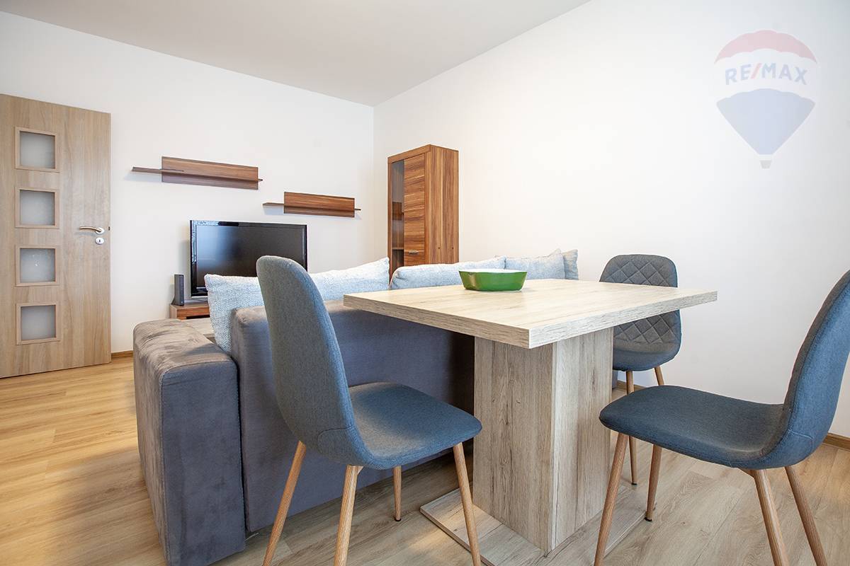 Na prenájom 2-izbový byt v Kostolišti Realitná kancelária RE/MAX Mr & Mrs vám ponúka na prenájom priestranný 2-izbový byt v Kostolišti. Byt pozostáva z: • 1 samostatnej spálne s výstupom na loggiu, • obývacej izby s výstupom na loggiu, • samostatnej kuchyne, • kúpeľne s toaletou. Byt je kompletne zariadený – k dispozícii je práčka, TV a ďalšie vybavenie. Prenajať si ho môžete ihneď. Maximálny počet osôb: 3 Podmienky nájmu: • nájomné: 600 €/mesiac • depozit: 600 € Pri bytovke parkovacie státie. Teším sa na vaše obhliadky.