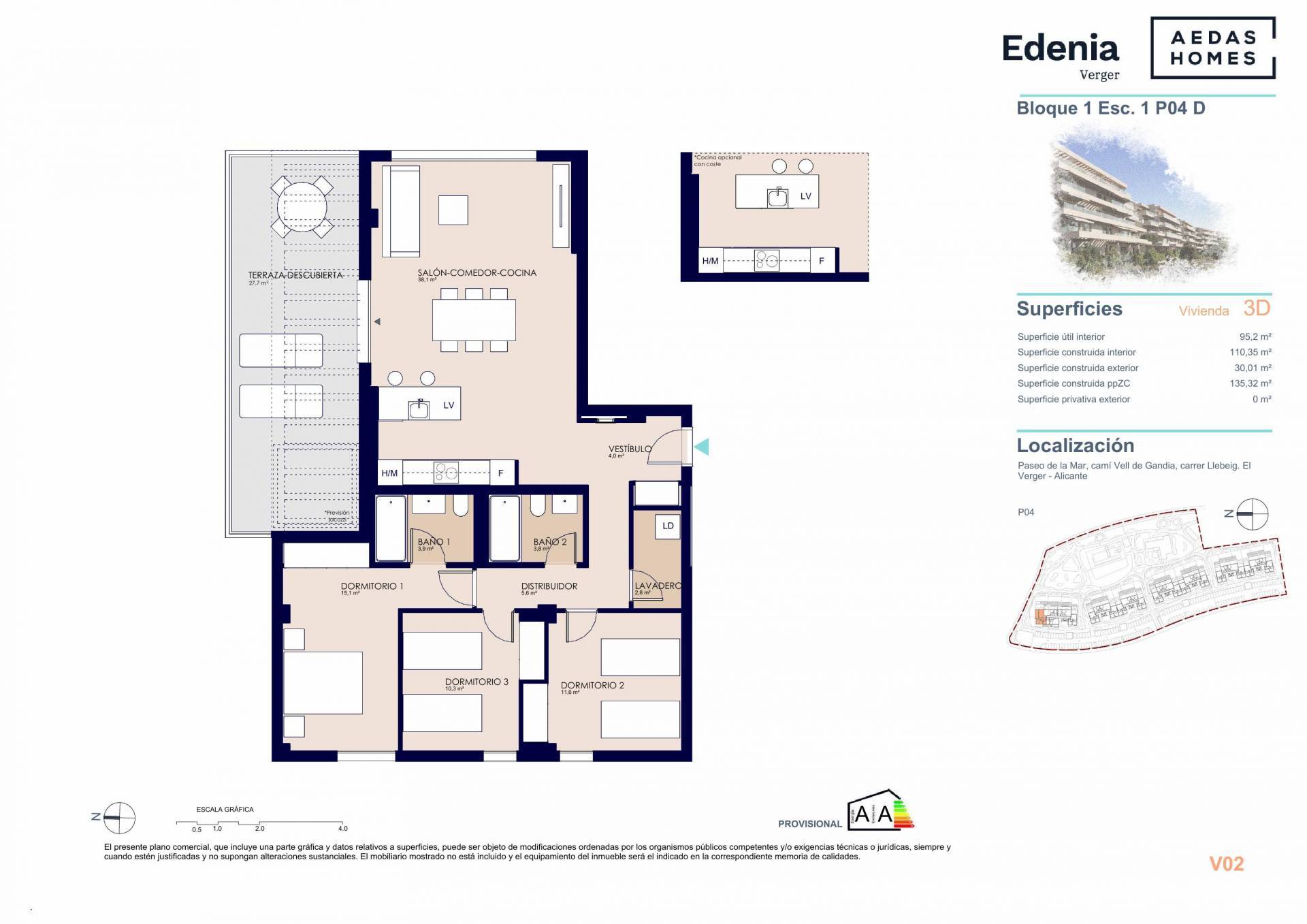 Objavte projekt EDENIA, rezidenčnú oázu so všetkým, čo potrebujete, strategicky umiestnenú v El Verger, len 10 minút od centra Dénie. Tu sa život stáva trvalou dovolenkou vďaka exkluzívnym 1-, 2- a 3-spálňovým apartmánom, navrhnutým pre vaše maximálne pohodlie. Predstavte si, že sa každý deň prebudíte a vychutnáte si úchvatný výhľad zo svojej priestrannej terasy, ktorá je ideálnym miestom na relaxáciu. V Edenii je vaše pohodlie našou prioritou. Ponorte sa do osviežujúceho bazéna, uvoľnite svoju myseľ a telo v jacuzzi a saune, zostaňte aktívni v plne vybavenom fitnescentre alebo si oddýchnite v našich rozsiahlych a sviežich zelených priestoroch. Potrebujete priestor na prácu alebo spoločenské stretnutia? Naše coworkingové a spoločenské priestory sú navrhnuté práve pre vás. Poloha je jednoducho bezkonkurenčná: len kúsok od mora a s okamžitým prístupom ku všetkým základným službám pre váš každodenný život. Každý detail vášho nového domova bol starostlivo vybraný, aby vám ponúkol maximálny komfort a funkčný dizajn. Tento raj nájdete len 10 minút od centra mesta Denia. Budete mať na dosah všetky služby, ale zároveň si budete môcť užívať pokoj a pohodu, ktoré vám poskytne príroda a more. Okrem toho je vaše pohodlie zaručené vďaka krytému parkovisku vnútri areálu, ktoré je zahrnuté v cene každého apartmánu! Kód bytu: 5308-VI-1-01-04-D Podrobný popis projektu a vybavenia apartmánov, vrátane zoznamu aktuálne dostupných objektov/apartmánov nájdete tu: https://rem.ax/edenia Realitná kancelária RE/MAX Vista je zmluvným a autorizovaným predajcom projektu na Slovensku a v Českej Republike. Na mieste vás prevedieme celým procesom od výberu a kúpy apartmánu, vrátane právnych záležitostí, financovania, poistenia a popredajnej starostlivosti. Vybrané španielske banky poskytujú hypotekárne financovanie aj pre cudzincov (najmä z eurozóny, ale dnes už aj pre záujemcov z Českej republiky) vo výške do 70% hodnoty kupovanej nehnuteľnosti s tým, že sa ručí touto nehnuteľnosťou. Profesionalita, inovácie, dizajn a udržateľnosť sú základnými piliermi, ktoré nájdete, keď sa na našu kanceláriu RE/MAX obrátite ako na oficiálneho predajcu projektov AEDAS Homes, ktorý má rozsiahle vedomosti, skúsenosti a odborné znalosti v oblasti realizácie rezidenčných a rekreačných developmentov. Vďaka srdečnosti a profesionalite personálu sa budete cítiť ako doma ešte skôr, ako do projektu vstúpite. Keď si prostredníctvom RE/MAX Vista vyberiete nehnuteľnosť od spoločnosti AEDAS Homes, rozhodnete sa nielen pre najvyššiu kvalitu a avantgardnú architektúru, ale aj pre udržateľnosť a starostlivosť o životné prostredie. Sú to „zelené“ domy, ktoré obsahujú najmodernejšie inovácie. Využívajú najmodernejšie technológie, aby vám uľahčili život a prispôsobili ho potrebám 21. storočia. Ďakujeme za vašu dôveru