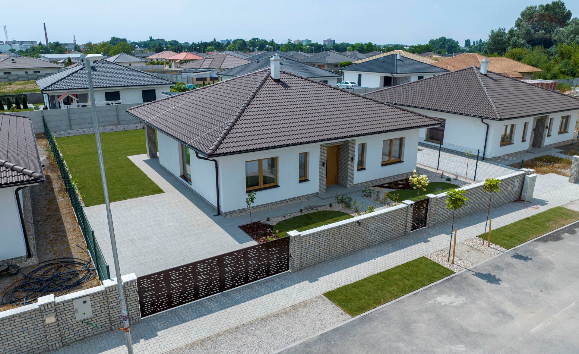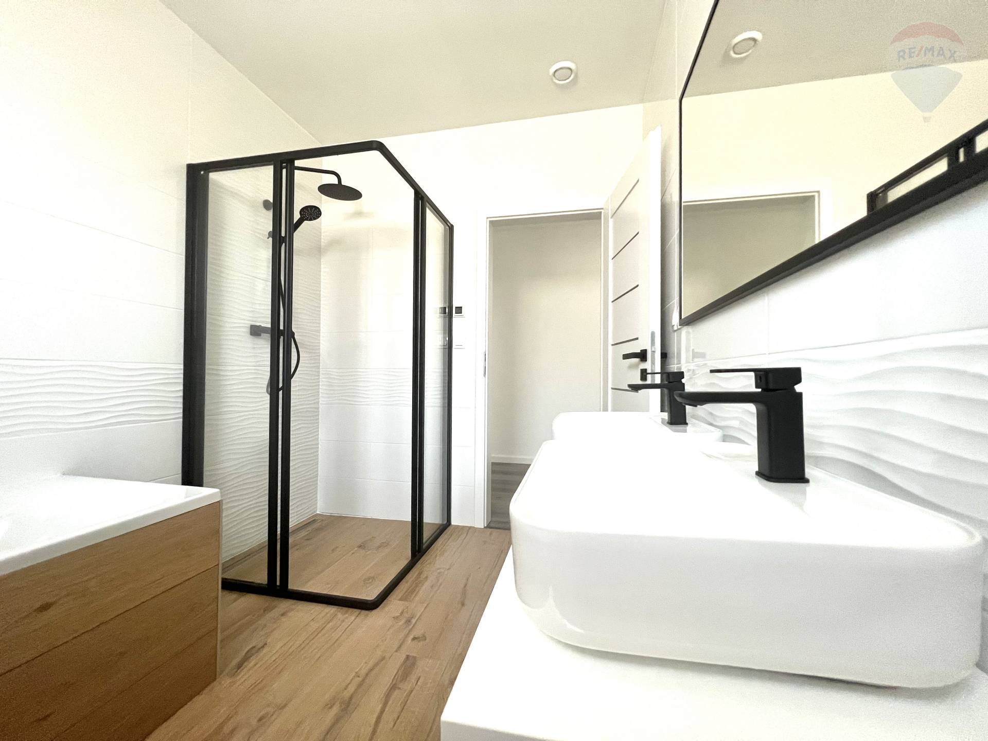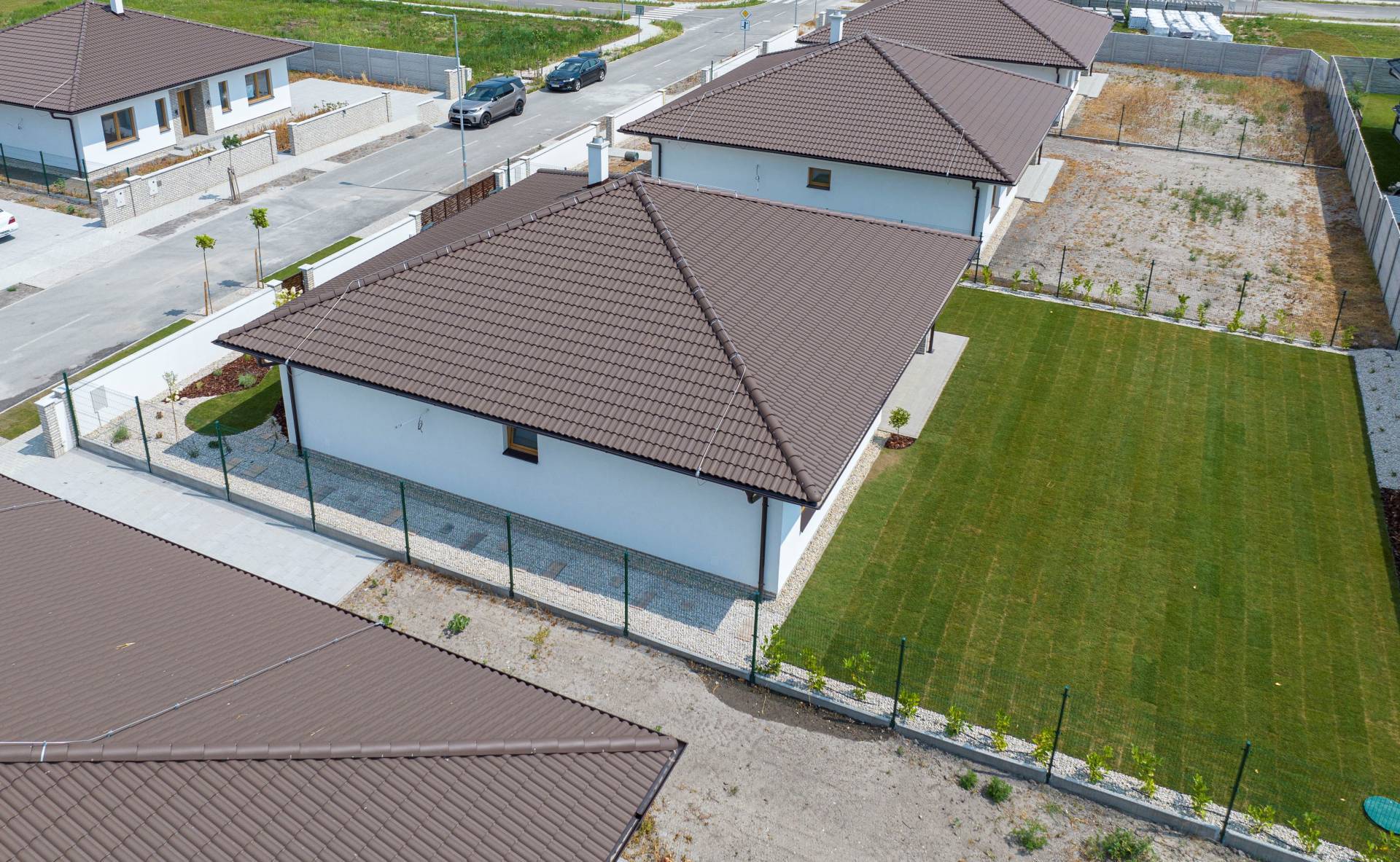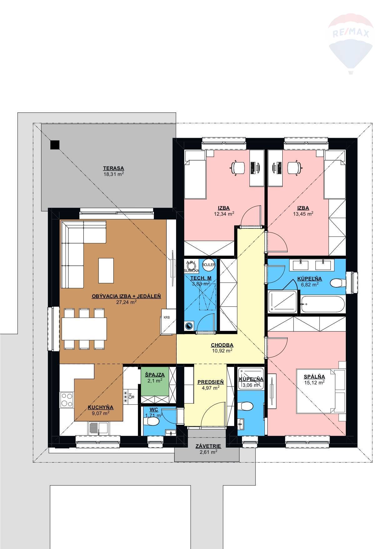 Realitná kancelária RE/MAX ponúka bývanie v priestrannom dome s praktickou dispozíciou a zabudovanou terasou na pozemku s rozlohou 600 m2. Dom RD 3 je umiestnený v kľudnej časti mesta Dunajskej Stredy v novo vybudovanej obytnej štvrti na Győrskej ulici. Ponuku rodinných domov si pozrite na stránke: https://www.domyds.sk/ Dom sa predáva v dokončenom stave. * Celková úžitková plocha rodinného domu je 110,51 m2 + terasa 17,5 m2. * Celková zastavaná plocha rodinného domu bez terasy je 139,8 m2. KONŠTRUKCIA: * nosné steny hr. 30 cm brúsená tehla Wienerberger, priečky hr. 11,5 cm * zateplenie hr. 15 cm polystyrén * strecha väzníková s izoláciou hr. 35 cm z minerálnej vlny * krytina Terran Danubia hnedá * plastové okná Gealan s izolačným trojsklom * omietka cementová, steny vystierkované * fasádna omietka Baumit Silikát Top 1,5 mm škrabaná biela * STEGU Cambridge 1 (sokel, vchod, terasa a oplotenie) DISPOZÍCIA: *predsieň 4,97 m2, WC 1,71 m2, špajza 2,10 m2, kuchyňa 9,07 m2, obývacia izba + jedáleň 27,26 m2, technická miestnosť 3,83 m2, chodba 10,92 m2, izba 12,34 m2, izba 13,45 m2, spálňa 15,12 m2, kúpeľňa + WC 6,82 m2, kúpeľňa + WC 3,06 m2, krytý vstup 2,61 m2, krytá terasa 18,31 m2. VYBAVENOSŤ: * podlahové kúrenie DEVI s reguláciou tepla v každej miestnosti s digitálnymi termostatmi * príprava teplej vody zabezpečená s bojlerom * 2x kúpelňa, 3x WC Geberit * zámková dlažba 8 cm so štyrmi miestami na parkovanie * napojenie na verejný vodovod a na verejnú kanalizáciu a elektriku * odvodnenie dažďovej vody do vsakovanej jamy * elektrická brána s motorom * video vrátnik * predpríprava na centrálnu kanálovú klimatizáciu a rekuperáciu všetkých miestností * predpríprava na alarm * predpríprava na fotovoltiku * predpríprava na krb (komín s revíziou) * predpríprava na elektrické žalúzie (resp. elektrické rolety) * predpríprava na optiku * predpríprava na záhradný domček (elektrina) * úložný priestor na povale 19 m2 * vlastná studňa * zavlažovací systém * osvetlenie fasády a oplotenia (automatické zapínanie) * navážky zeminy a úprava terénu na celom pozemku BENEFITY DOMU: * parkovacie státia pre 4 autá * dostupnosť do Bratislavy do 30 min (cez rýchlostnú cestu R7) * tichá slepá ulička * nízke režijné náklady domu * kompletne oplotený pozemok * slnečný, pekný výhľad, tiché prostredie. V okolí je vynikajúca občianska vybavenosť. V prípade potreby ponúkame Vám bezplatné poradenstvo a pomoc pri financovaní kúpy formou hypotekárneho úveru. Cena je vrátane provízie realitnej kancelárie RE/MAX, kompletného právneho servisu a poplatkov spojených s prevodom vlastníckych práv.