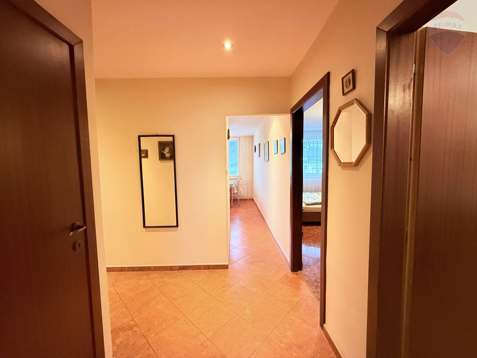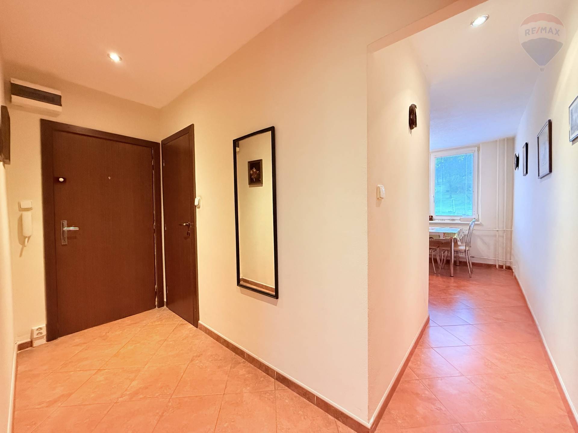 Hľadáte veľký priestranný byt s loggiou, ktorý Vám zabezpečí pohodlie, priestor a skvelú dostupnosť?! Realitná kancelária RE/MAX Vám ponúka na predaj, priestranný 3-izbový byt na ulici Mierovej v Humennom. Byt je v osobnom vlastníctve, nachádza sa na 6.z 8 poschodí bytového domu je rozlohe 80 m². Orientovaný je sever/juh vďaka čomu je príjemne presvetlený celý deň. K bytu prislúcha pivnica na technickom podlaží bytového domu. Dispozícia bytu: obývacia izba s loggiou, spálňa, detská izba, kuchyňa, komora, kúpeľňa s WC. Byt prešiel rekonštrukciou: Vymenené sú okná za plastové, znížený strop v chodbe a kuchyni s bodovými svetlami. Podlahy v kombinácii s dlažbou, vymenené interiérové dvere. Kuchynská linka so spotrebičmi plynová varná doska, elektrická rúra, digestor. Murované jadro je obložené keramickým obkladom nachádza sa tam sprchovací kút, umývadlo so skrinkou, z vrchu plnená práčka a WC. Bytový dom je zateplený, má novú fasádu a strechu. Vstup je bezbariérový, výťah premáva od prízemia a je plánovaná jeho výmena. Dom je zabezpečený elektronickým vrátnikom. Výhody: Len 5 minút pešo od centra mesta! V bezprostrednej blízkosti nájdete školy, škôlky, umeleckú školu, obchody, reštaurácie, služby, polikliniku aj políciu. Lokalita, ktorá ponúka všetko pre pohodlné rodinné komfortné bývanie bez nutnosti ďalších úprav. Stačí sa len nasťahovať a začať si užívať nový domov! Cena nehnuteľnosti je vrátane provízie, kompletného právneho servisu RE/MAX, vybavenia úveru a všetkých činností spojených s prepisom energii.