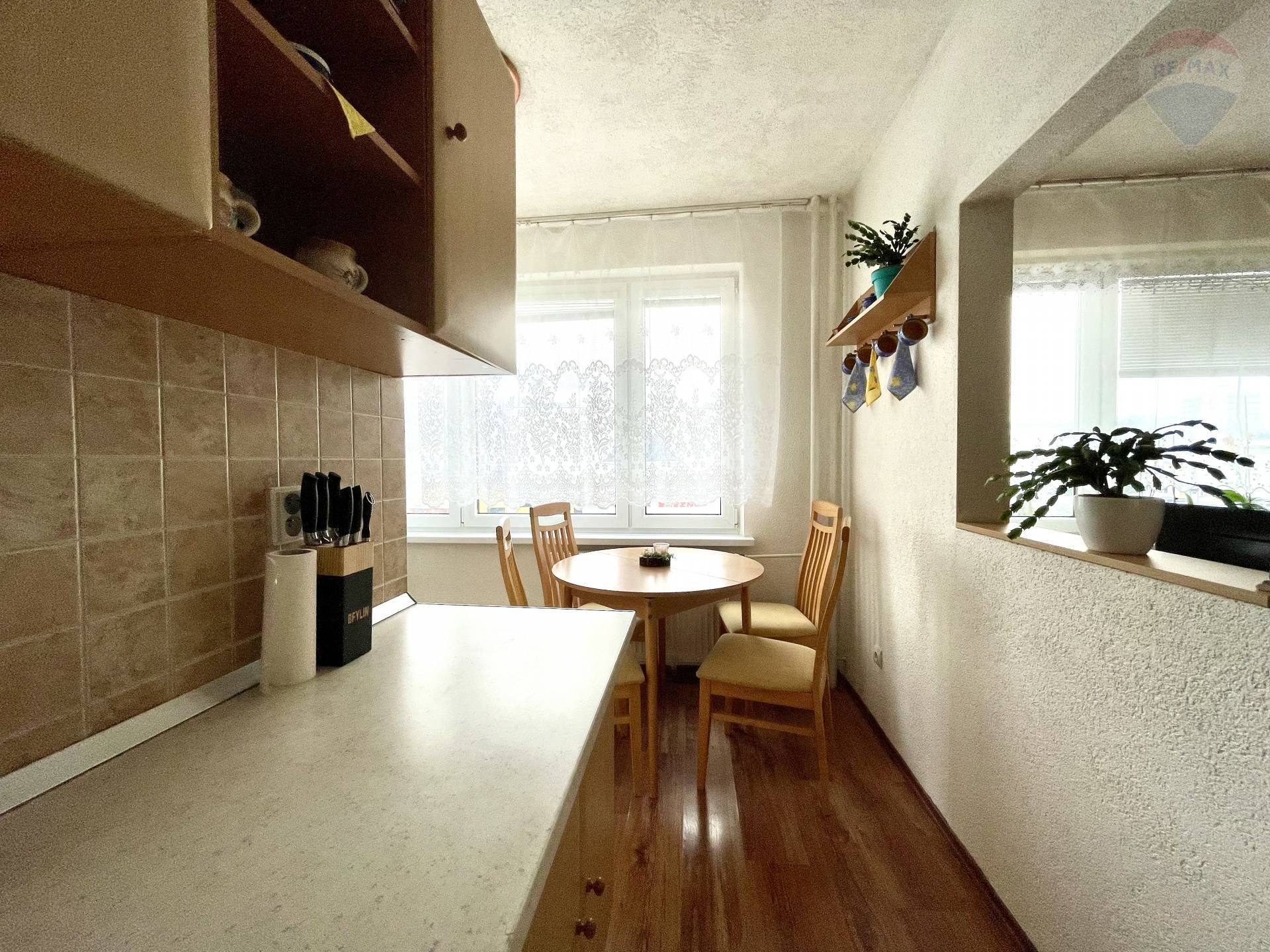 RE/MAX ponúka na predaj príjemný byt v dobrej lokalite, využívaný ako trojizbový ✨, nakoľko jedna veľká priestranná izba je šikovne predelená na dve časti, pričom jedna slúži ako spálňa a druhá ako detská izba. Byt prešiel praktickými úpravami, ktoré zvyšujú komfort bývania. V byte sú urobené nové stierky, murované jadro, podlahy, sanita, obklady, tri vstavané skrine (v spálni, detskej časti izby a na chodbe), radiátory a nové bezpečnostné vstupné dvere. Ide o bežné, funkčné úpravy vhodné pre pohodlné bývanie. Orientácia bytu sever – juh, čo zabezpečuje príjemné presvetlenie počas dňa. Výborná poloha – byt sa nachádza oproti Aréne, v blízkosti je Tesco, viaceré nákupné centrá, služby. Lokalita je praktická pre každodenný život a všetko potrebné máte v blízkosti. Byt je možné kúpiť aj s čiastočným zariadením – bez navýšenia ceny. Ideálna voľba pre rodinu alebo kohokoľvek, kto hľadá praktické bývanie v dobre situovanej časti mesta. Cena je konečná – zahŕňa všetky poplatky spojené s prevodom nehnuteľnosti: poplatky pre kataster, právne služby a vypracovanie zmlúv, protokolárne odovzdanie bytu, kompletné zabezpečenie prepisu energií. Bez ďalších skrytých nákladov či doplatkov.