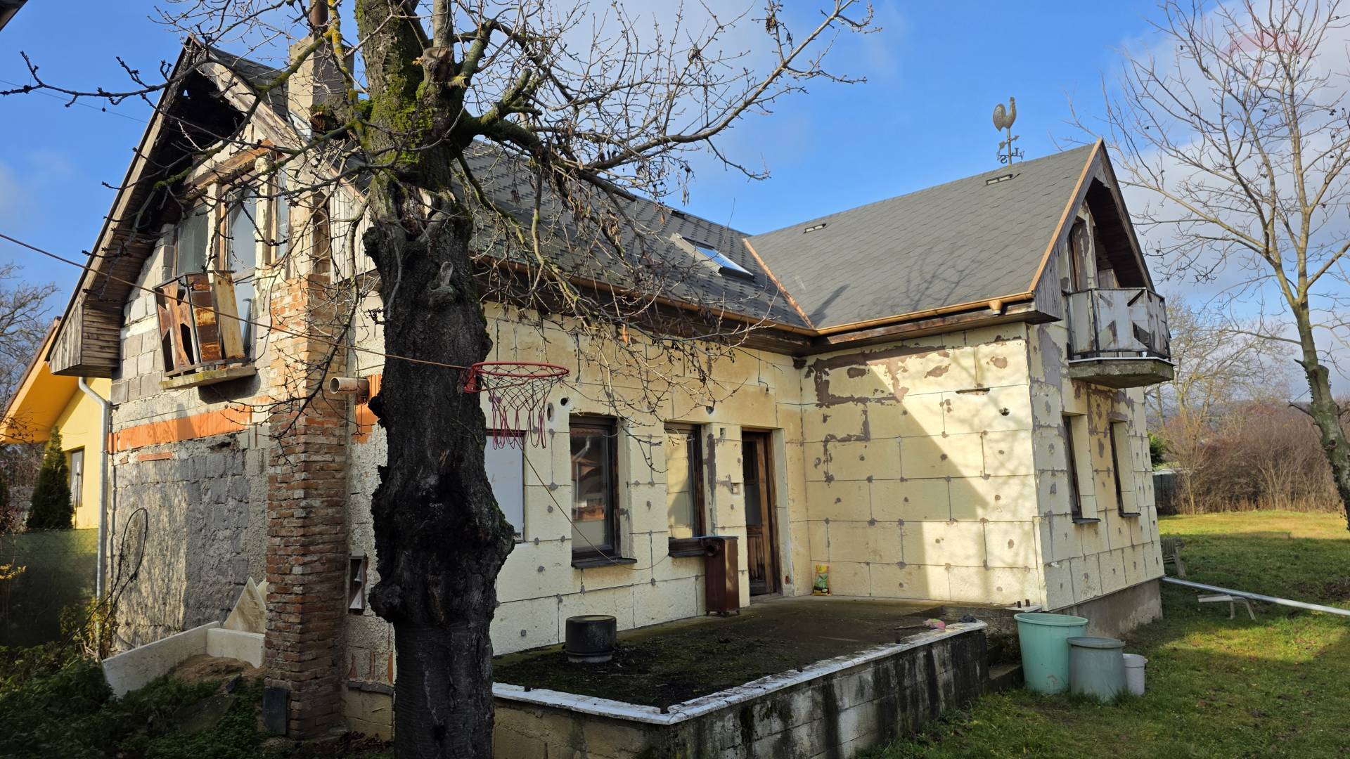 EXKLUZÍVNE IBA U NÁS! Realitná kancelária RE/MAX Vám ponúka na predaj poschodový 4-izbový rodinný dom v obci Jelenec, ktorý je potrebné kompletne zrekonštruovať. Dom s pozemkom sa predáva v stave, ako je na fotografiách inzerátu. Pozemok a Plochy Výmera pozemku: 1023 m2 Rozmery pozemku: šírka od cesty 22 m, dĺžka 68 m Zastavaná plocha domu: cca 80 m2 Úžitková plocha domu: cca 120 m2 1.NP (Prízemie): cca 60 m2 2.NP (Poschodie): cca 60 m2 Siete a Stavba. Voda: Obecný vodovod Elektrina: Pripojenie vzduchom cez nástrešník Plyn: Privedený na pozemok pri plote od cesty Odpad: Bude potrebné riešiť žumpou Stavba: Murovaný dom z tvárnic bol postavený v roku 2000, nebol úplne dokončený. Poškodenie: Od roku 2021 má čiastočne poškodený krov od požiaru. Dispozícia. 1. NP (Prízemie):Zádverie s centrálnou chodbou a schodiskom na poschodie, Kúpeľňa (so sprchovacím kútom, vaňou a umývadlom), Samostatné WC, Technická miestnosť, Kuchyňa s jedálňou (so vstupom na terasu do záhrady), Komora, Obývacia izba. 2. NP (Poschodie):Nočná časť s tromi nepriechodnými izbami (vstup z chodby), Výlez na povalu z chodby, Malý priestor vhodný na kúpeľňu alebo šatník. Ostatné na Pozemku. Na pozemku sa nachádza drevená chatka (nezapísaná na katastrálnej mape), pod ktorou je pivničný priestor. Tip realitného makléra. Dispozičné riešenie vyhovuje aktuálnym požadovaným štandardom na bývanie. Ideálna nehnuteľnosť pre záujemcov so skúsenosťami s komplexnou rekonštrukciou domov. Dostatočný životný priestor pre mladú dynamickú rodinu s možnosťou na podnikanie. Lokalita: Jelenec sa nachádza len 14km od mesta Nitry, v oblasti zastavanej rodinnými domami s minimálnym ruchom áut. Uvedená cena je vrátane provízie realitnej kancelárie RE/MAX, kompletného právneho servisu, autorizovaných zmlúv a poplatkov spojených s prevodom vlastníckych práv.
