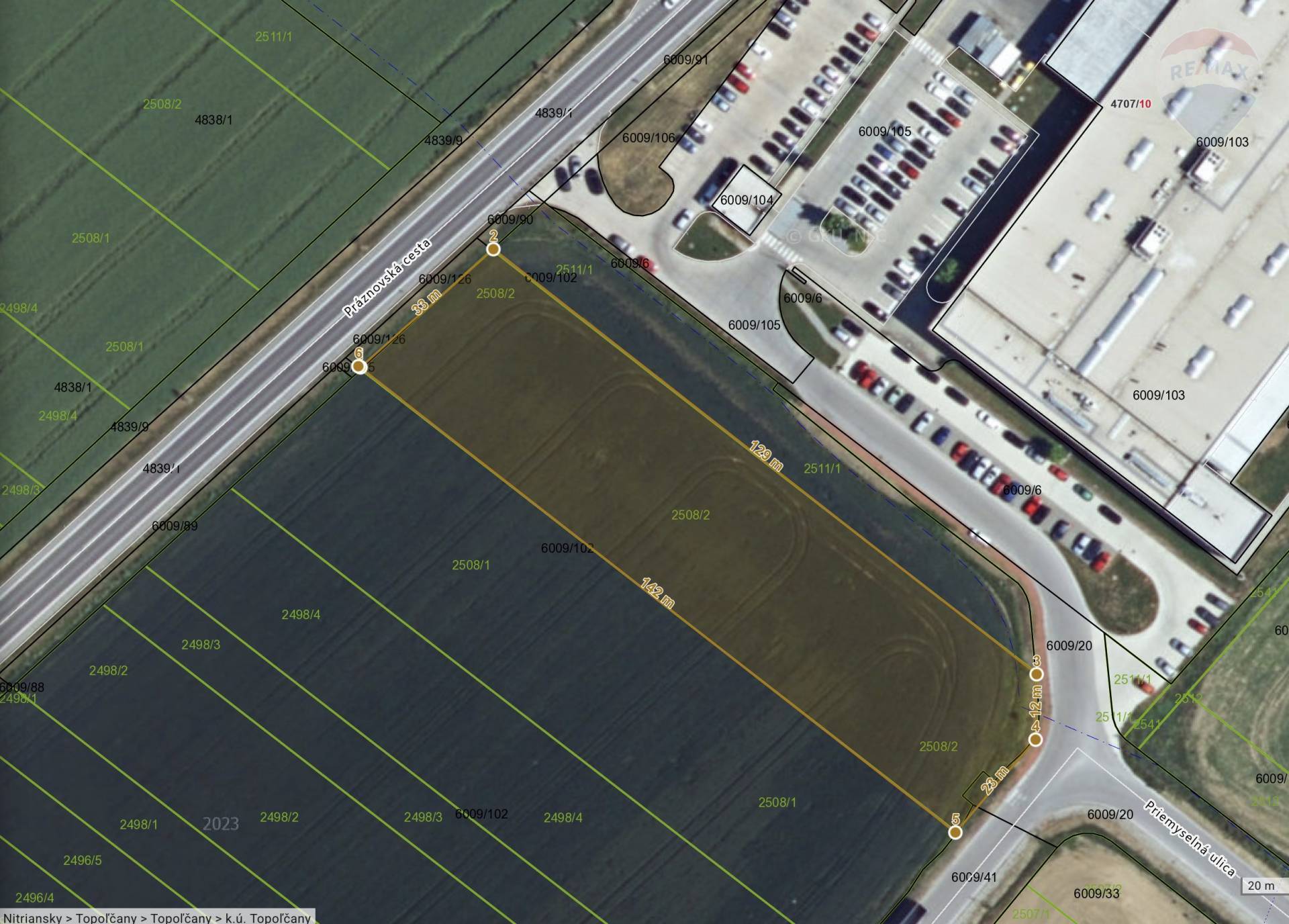 Je na predaj pozemok v priemyselnom parku Topoľčany o výmere 4500 m2. Je umiestnený oproti spoločnosti PANKL pri hlavnej ceste a prístupovej ceste ku spoločnosti PANKL. Je v dosahu inžinierských sietí. Je to rovinatý pozemok. Pozemok je v extraviláne mesta, uzemným plánom určený ako priemyselnú výstavbu. Rozlova cca. 33x135 m.