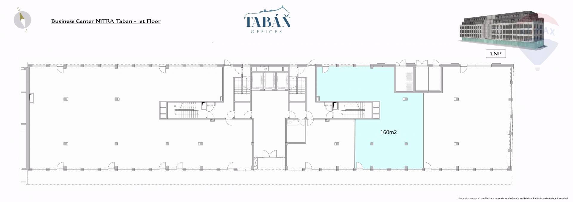 Realitná kancelária RE/MAX Vám ponúka na prenájom obchodný priestor v budove TABÁŇ Offices na Štúrovej ulici v Nitre, ktorá je súčasťou polyfunkčného komplexu Tabáň. Prevádzková jednotka o rozlohe 160 m2 sa nachádza na prízemí budovy so vstupom priamo z ulice. Zo zadnej strany je vstup od átria, ktorý môže slúžiť pre zásobovanie. Prenajíma sa ako holopriestor, ktorý si klient dokončuje vo vlastnej réžii. K priestoru je možné prenajať si parkovacie miesta v podzemnej garáži budovy. Cena prenájmu je zaslaná nájomcovi na vyžiadanie. Certifikát energetickej náročnosti budovy je k dispozícii. Administratívny blok ponúka najvyšší štandard z hľadiska použitých materiálov a kvality ich spracovania. Budova disponuje 3 výťahmi a bezbariérovým prístupom po celej budove vrátane garáže. Budova má atraktívnu polohu v centre mesta Nitra s vynikajúcim dopravným napojením ako individuálnou, tak aj mestskou hromadnou dopravou, s bezbariérovým peším prístupom. Umiestnenie budovy v absolútnom centre mesta poskytuje aj rýchlu a pohodlnú dostupnosť obchodov, služieb, stravovania, ako aj úradov, inštitúcií, zdravotnej starostlivosti a kultúry.