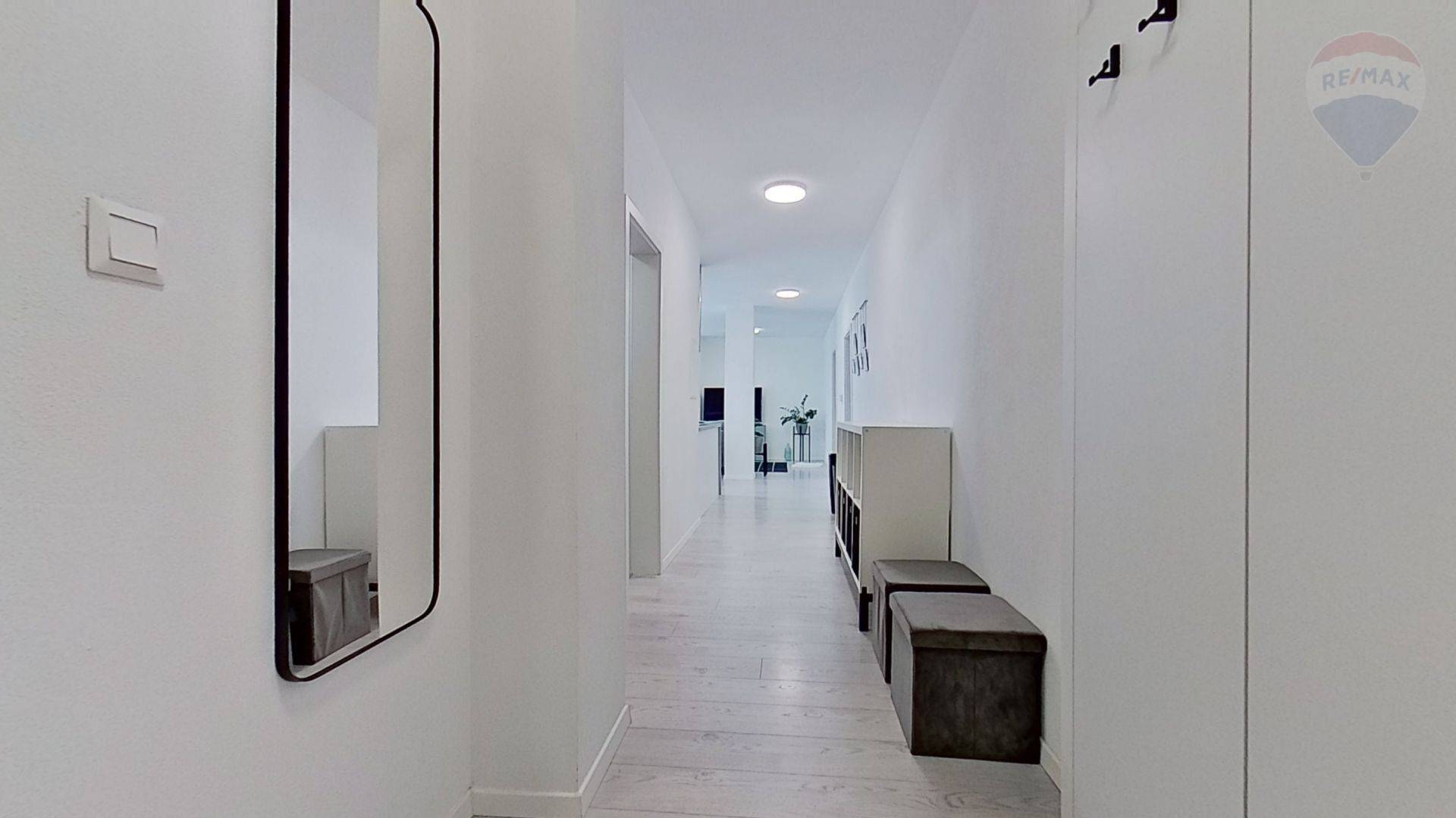 Realitná kancelária RE/MAX Family ponúka na prenájom krásny 3-izbový byt v novostavbe s nádherným výhľadom na celé mesto. Byt je plne zariadený, stačí si doniesť zubnú kefku a môžete sa nasťahovať. Byt s úžitkovou plochou 74 m2 je priestranný, keď si k úžitkovej ploche pripočítate južnú lodžiu a severnú terasu, celkovo si budete užívať až 115 m2 plochu, s jednoduchým parkovaním pre vaše vozidlo. Súčasťou bytu je aj veľká súkromná terasa (28 m2) s výhľadom na celé mesto, kde si môžete užívať pokojné chvíle s rodinou alebo priateľmi. Okrem toho, byt má aj lodžiu (12 m2) na južnej strane, ktorá vám poskytne ešte viac priestoru na relaxáciu. Dispozične sa po vstupe do bytu ocitnete v priestrannej chodbe, z ktorej sa vľavo vchádza do šatníka (3 m2), ďalej do kúpeľne s vaňou a toaletou (7.8 m2). Následne vchádzate do obývacej časti spojenej s kuchynským kútom v tvare U, ktorý obsahuje vstavané spotrebiče. Vpravo z obývacej izby sa nachádzajú 2 izby (12 a 13 m2) s výstupom na lodžiu. Z obývacej izby sa vychádza na terasu. Byt sa prenajíma zariadený v stave ako je prezentovaný v cene 1.00 EUR/mesiac, v cene sú zahrnuté poplatky, energie, internet. V prípade záujmu je možné prenajať vonkajšie parkovacie státie v cene 50 EUR/mes. Spolu s nájomným sa uhrádza depozit vo výške jedného mesačného nájomného a poplatok realitnej kancelárie za sprostredkovanie vo výške 500 EUR. Ak hľadáte nový, moderný byt s výhľadom a súkromím, neváhajte ma kontaktovať a dohodnúť si obhliadku.